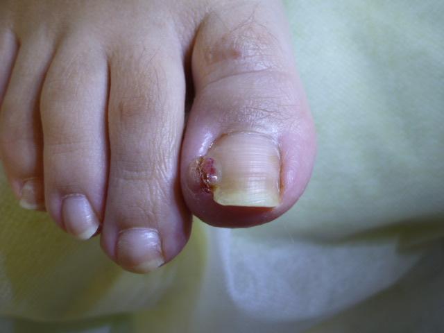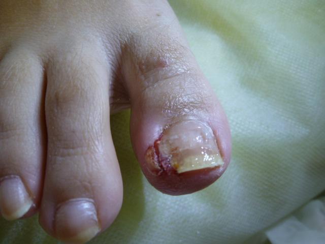 痛い状態でした。肉を下げて見ると爪が奥に食い込んでました。