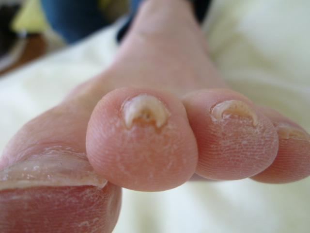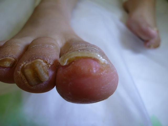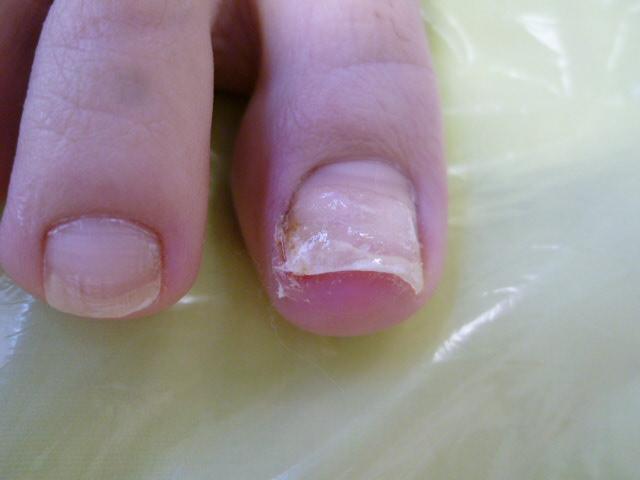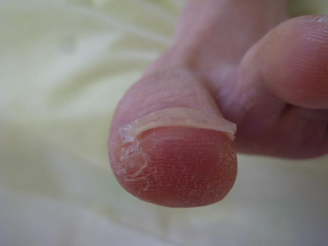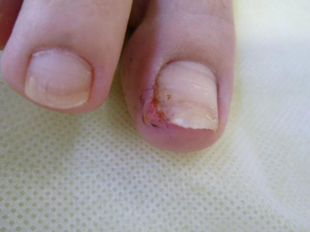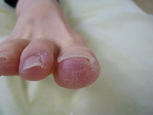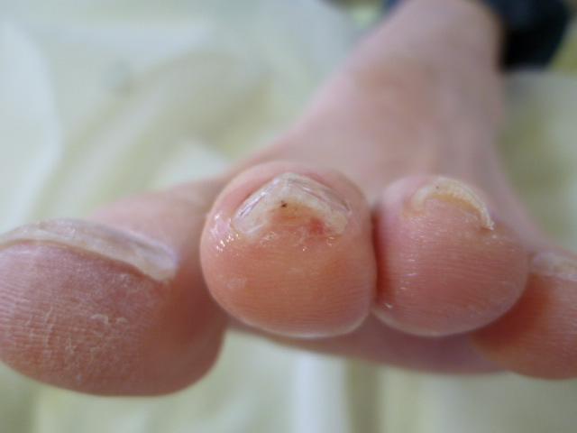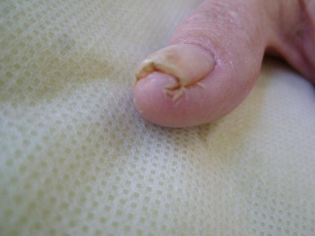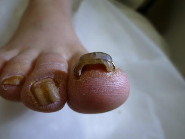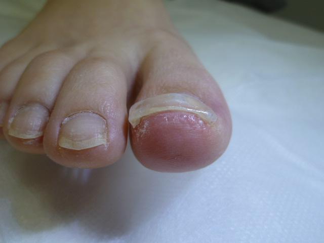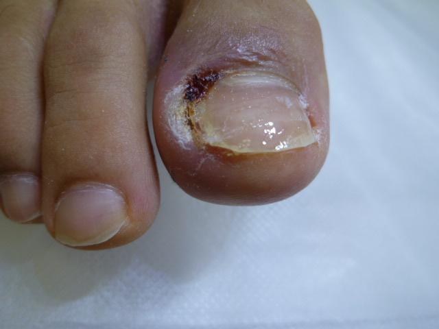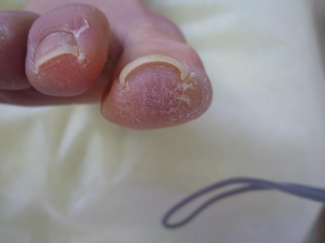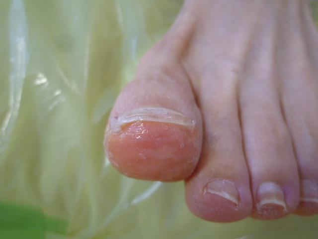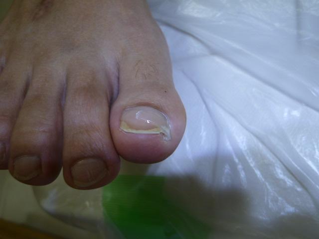 1ヶ月後の施術では、食い込んだ爪が肉の上にでて平らになりました。