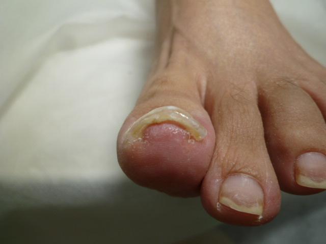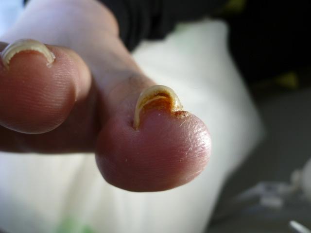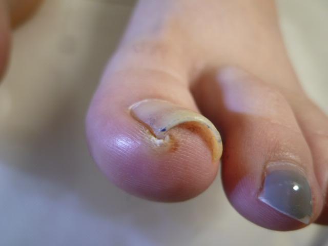 巻き爪が痛く食い込んで痛い状態。