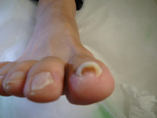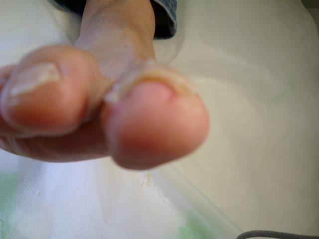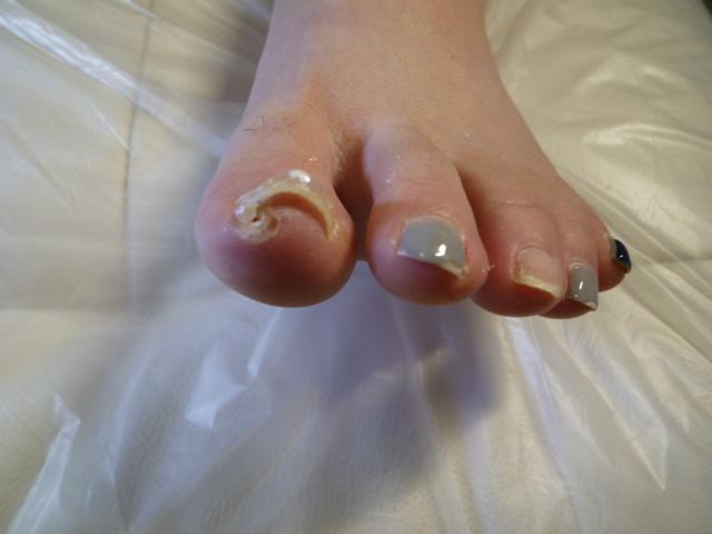 施術後、1回で、爪が広がり、爪の食い込んだ跡があります。